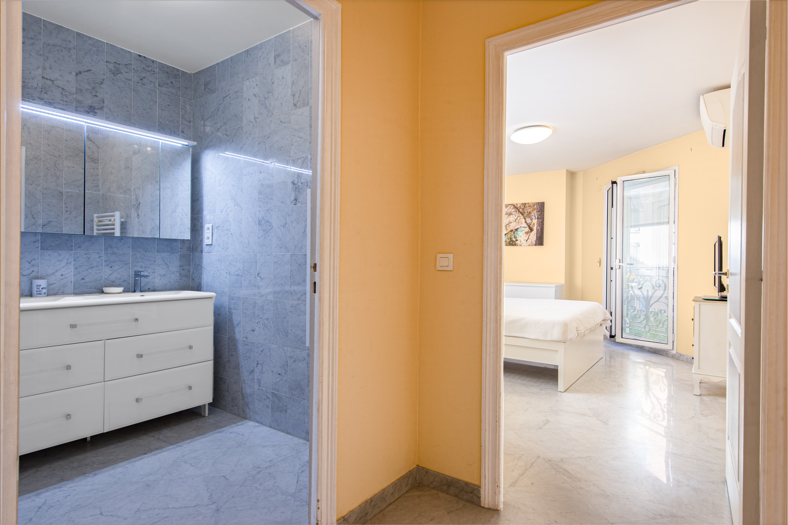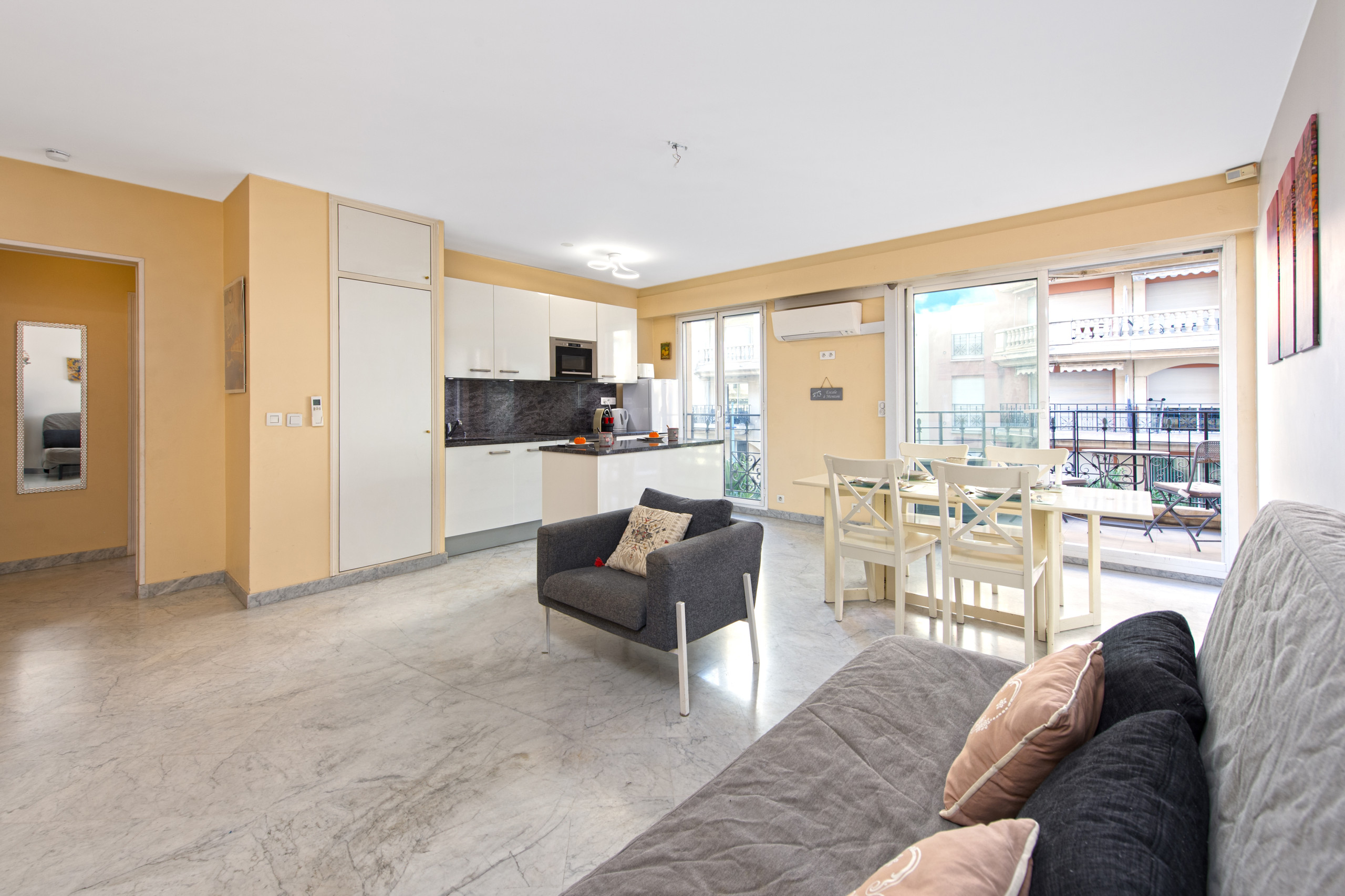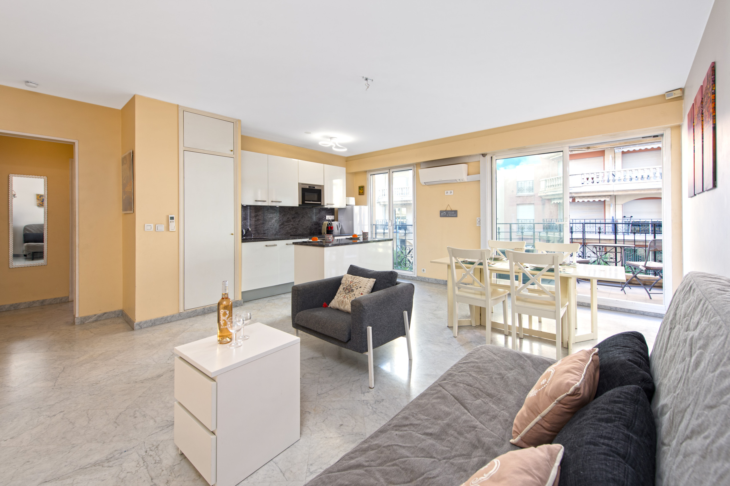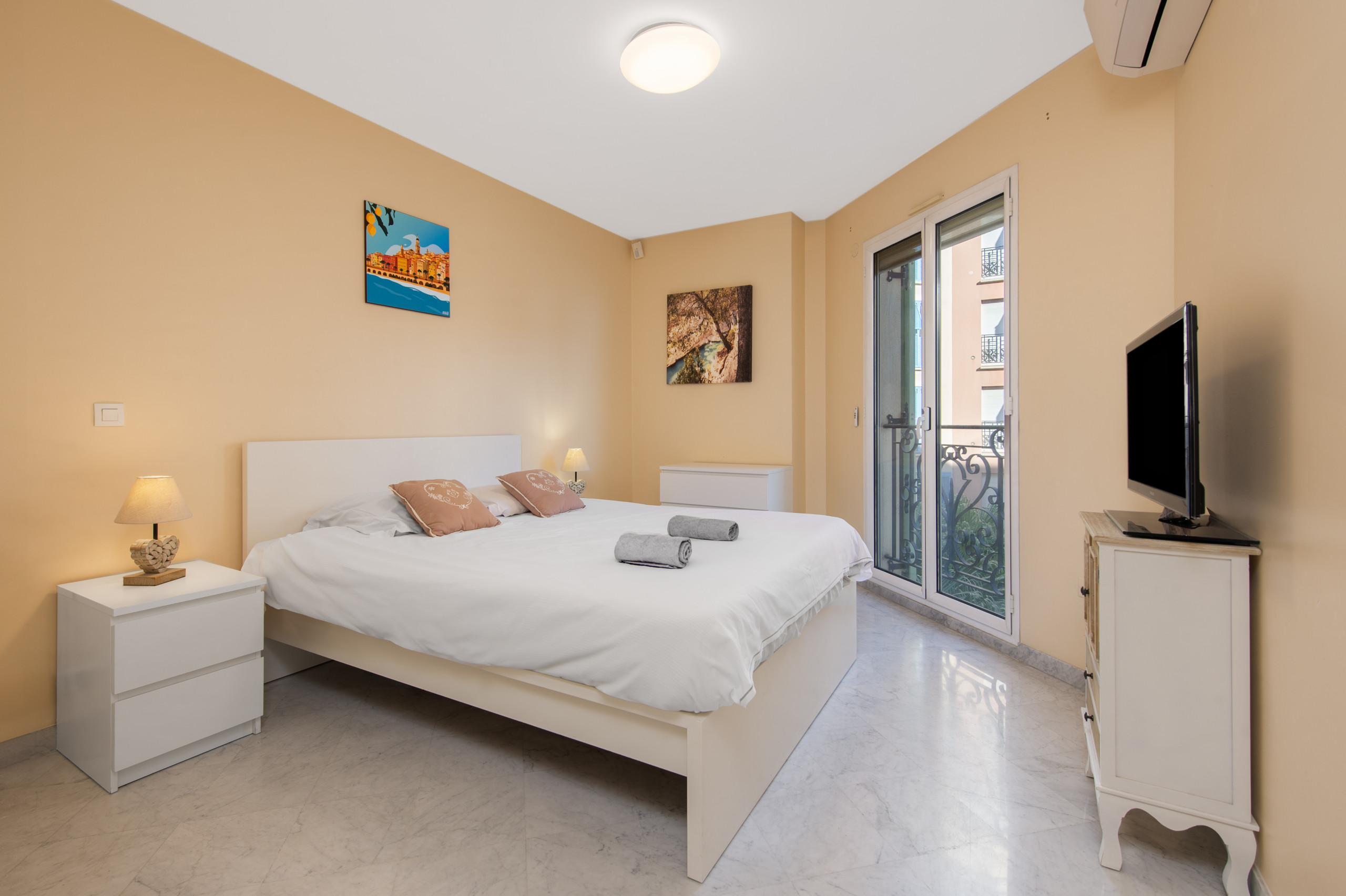 Discover our elegant one-bedroom apartment in Menton, perfect for 2 people. Ideally located next to the train station, it's perfect for exploring the region. The air-conditioned apartment features a bright living room, a cozy bedroom, and a balcony to enjoy the Mediterranean sun. You'll find all the comforts you need, including a fully equipped kitchen. An ideal base for a convenient and enjoyable stay on the French Riviera.