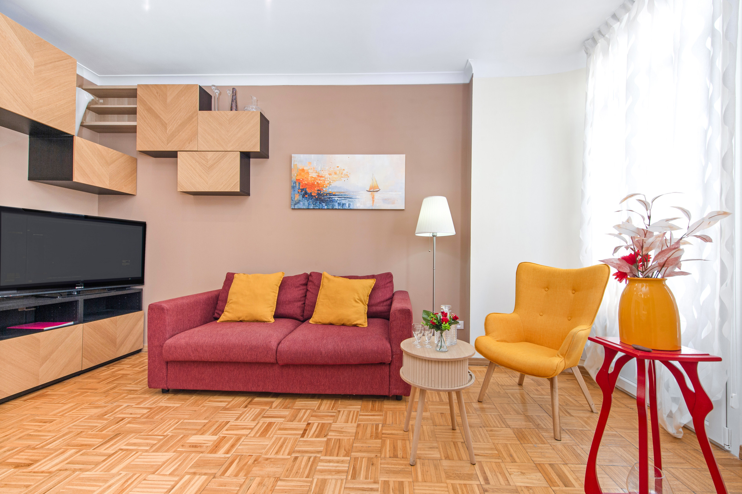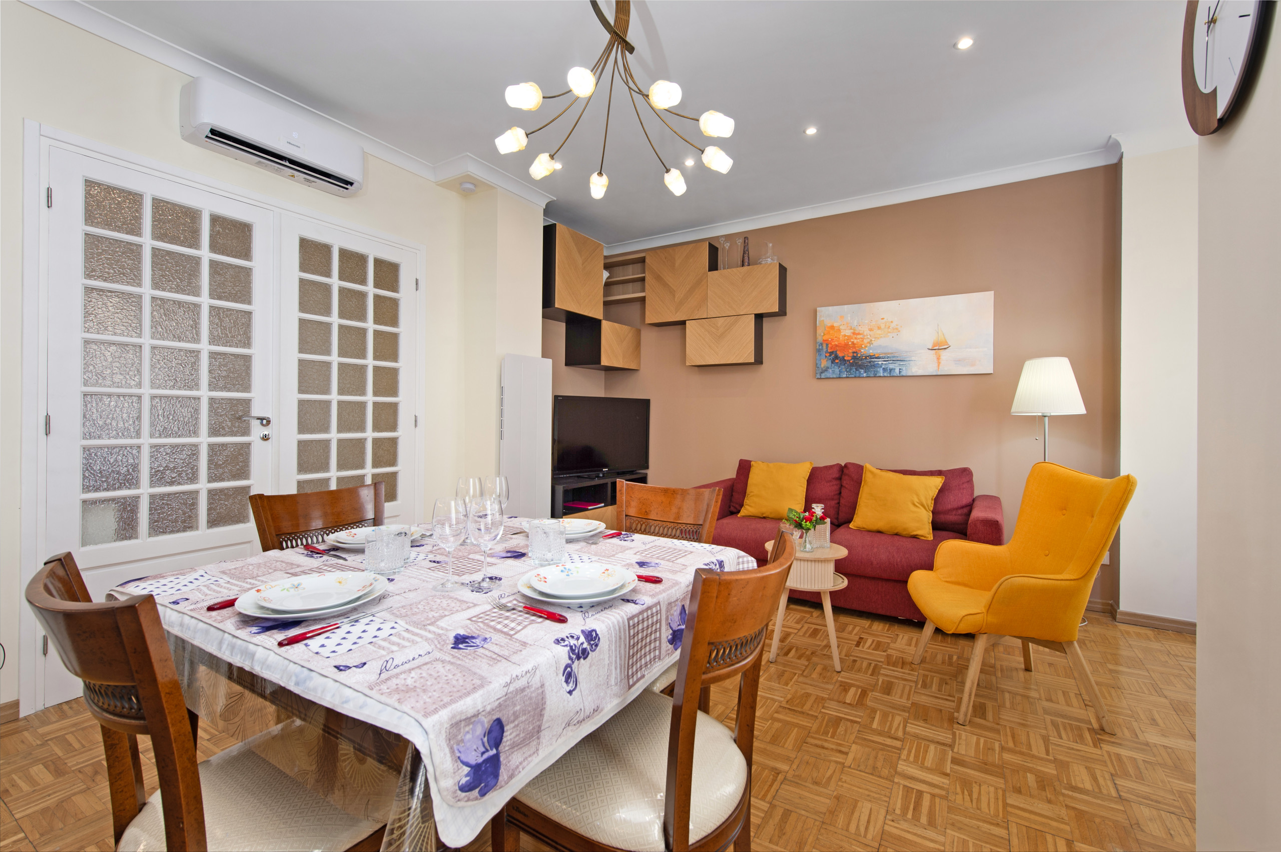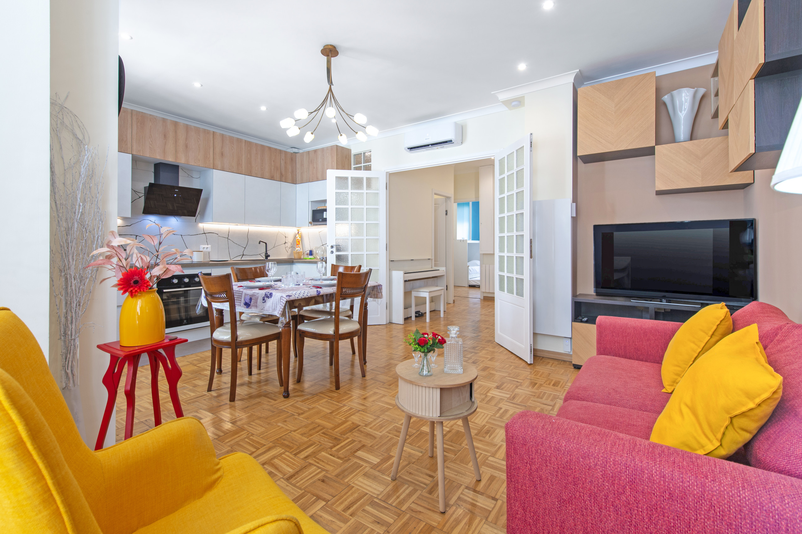 The accommodation is equipped with the following items: washing machine, iron, internet (Wi-Fi), hair dryer, electric heating, air-conditioned, 1 TV.