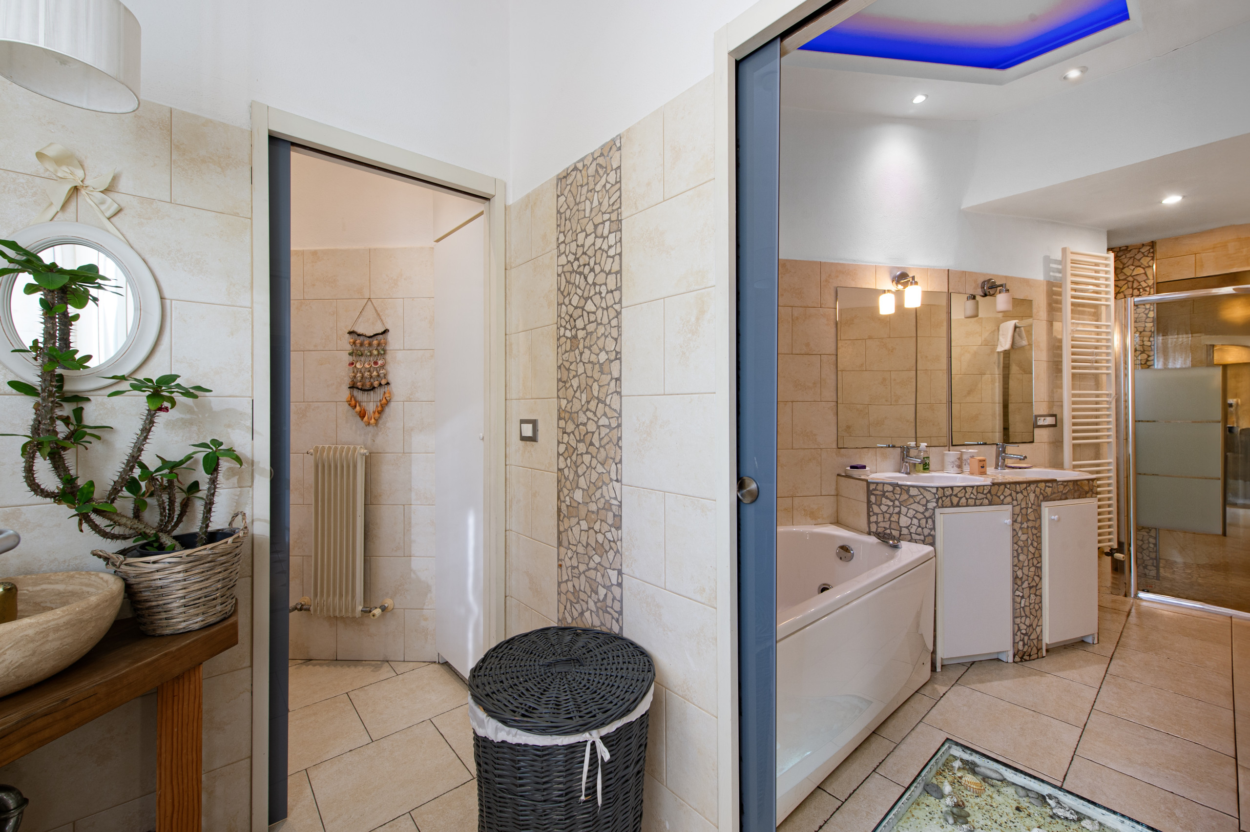 The bathroom is spacious and elegant, equipped with a large spa/jacuzzi bath, ideal for relaxing after a day of walking or beach time. It is carefully designed and offers an excellent level of comfort.