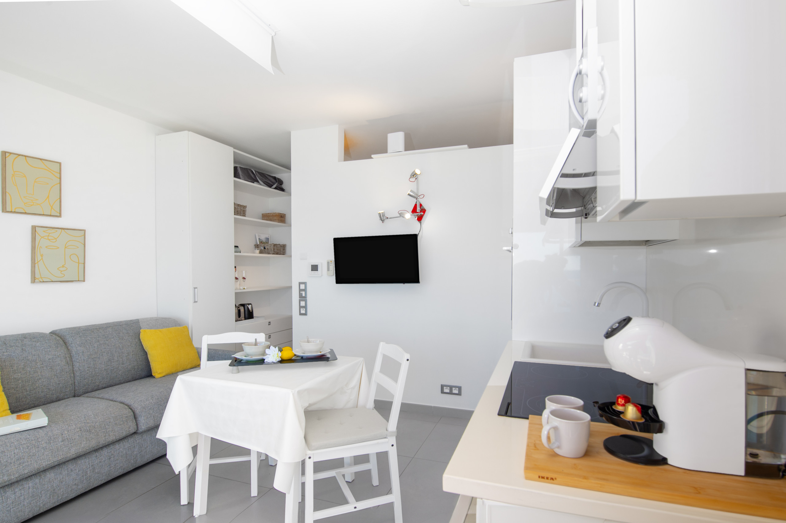 Studio with sleeping area on the 6th floor with sea view balcony and private parking.
