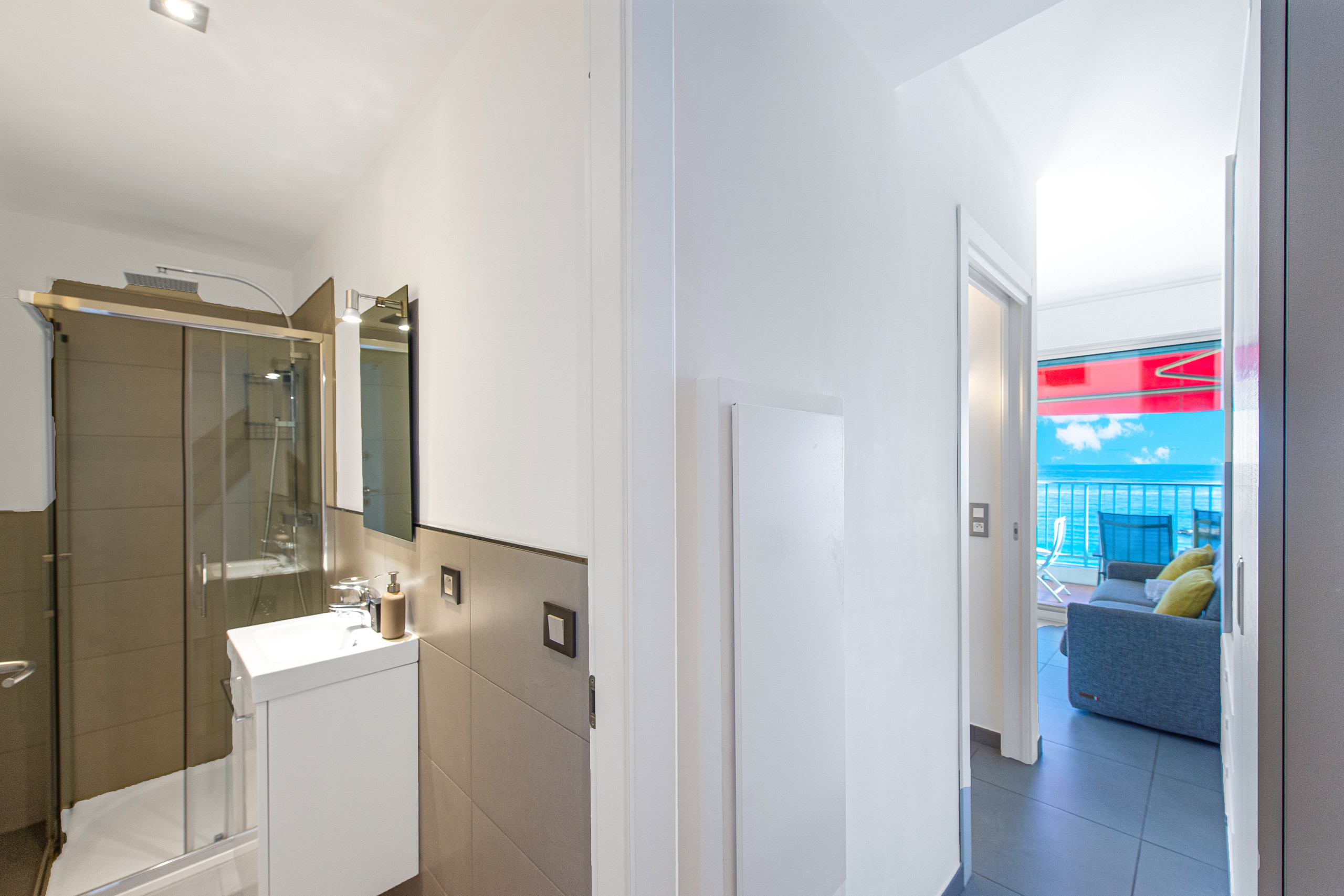 This magnificent apartment, located on the 6th floor of a high-end building (with lift), offers an unobstructed view of the Mediterranean Sea. In the immediate vicinity of Menton's historic centre, the beach is at the foot of the building. Private parking within the building.