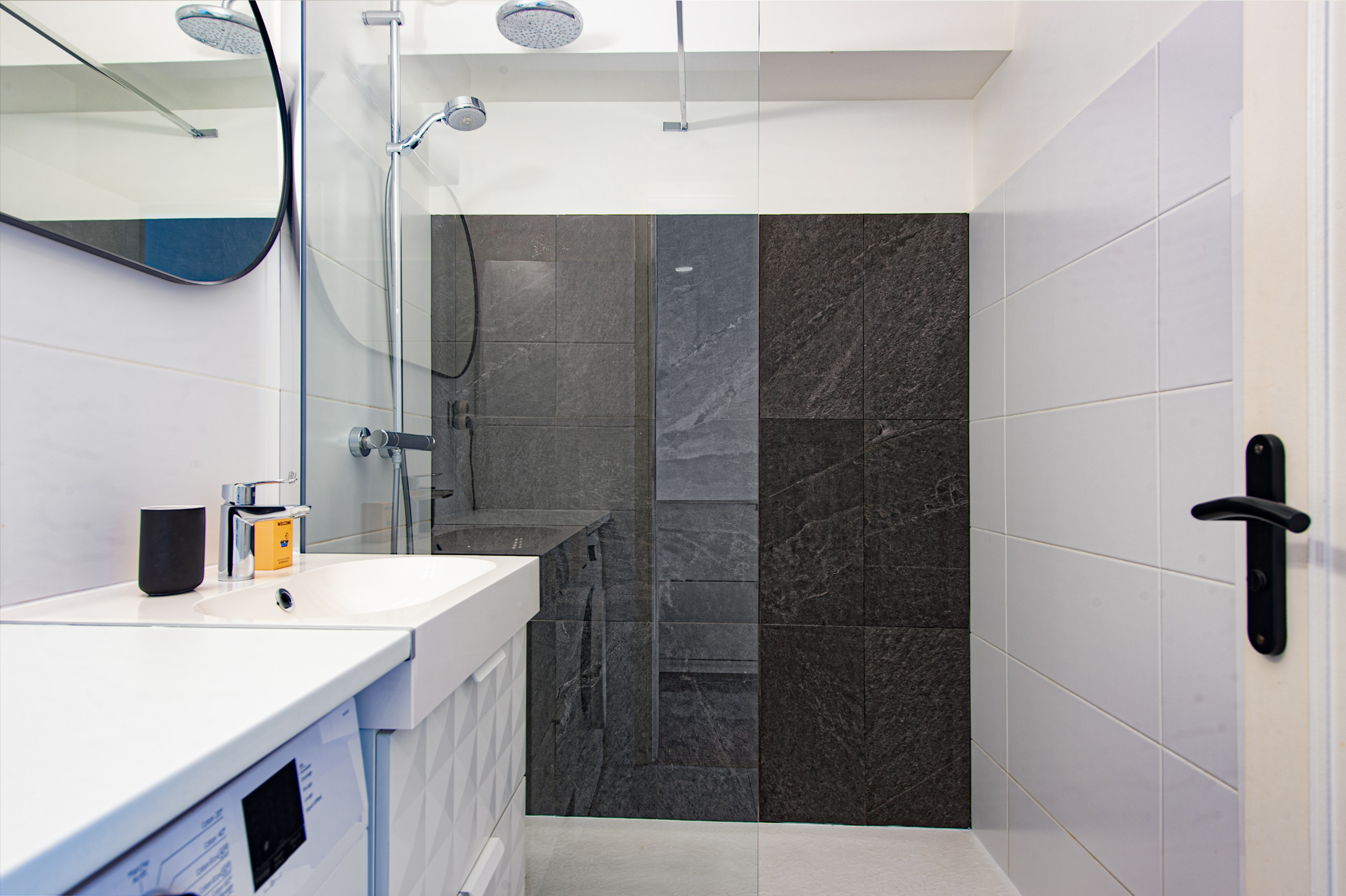 Le logement comprend 2 pièces : un salon lumineux, une chambre cosy, une cuisine entièrement équipée et une salle de bain moderne avec douche.