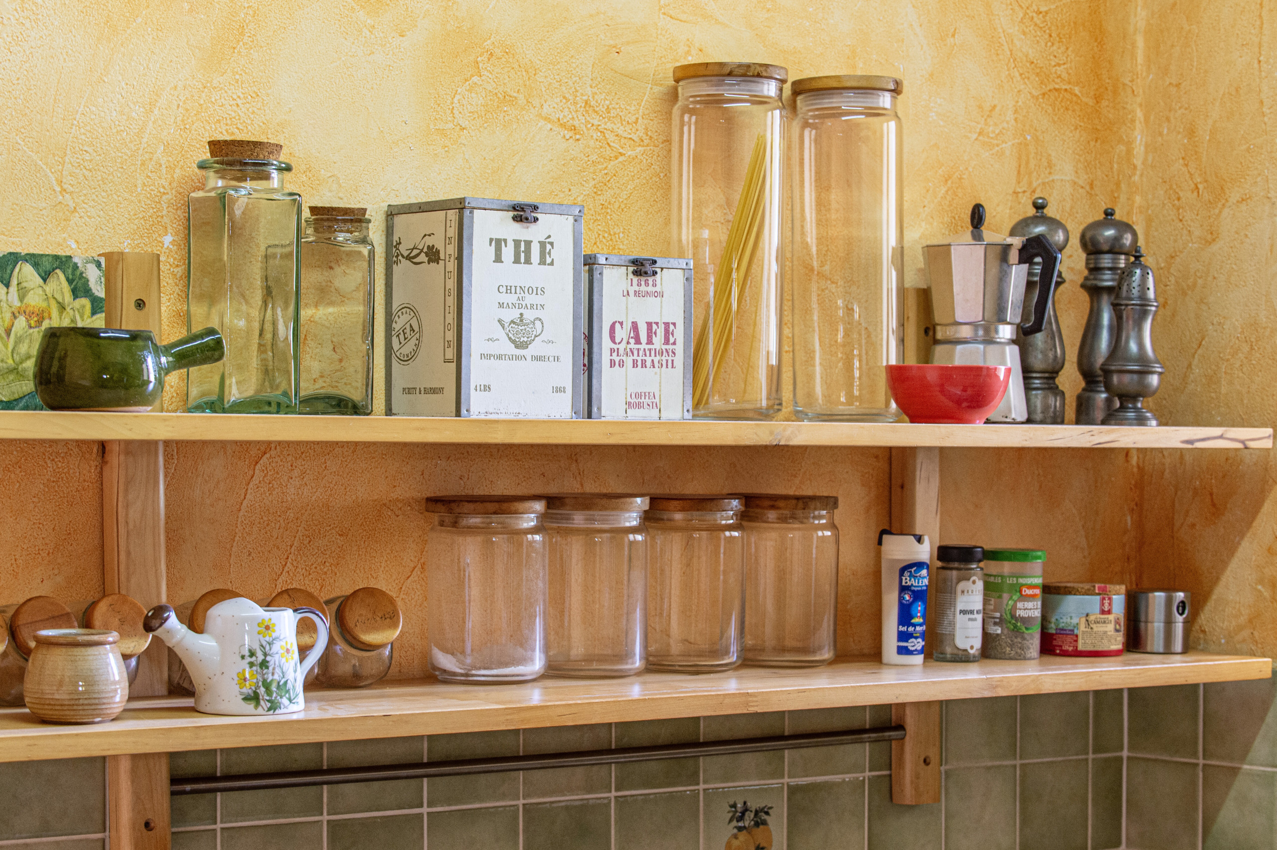 La cuisine américaine, à induction, est équipée avec réfrigérateur, micro-ondes, congélateur, vaisselle/couverts, ustensiles/cuisine, grille pain et bouilloire.