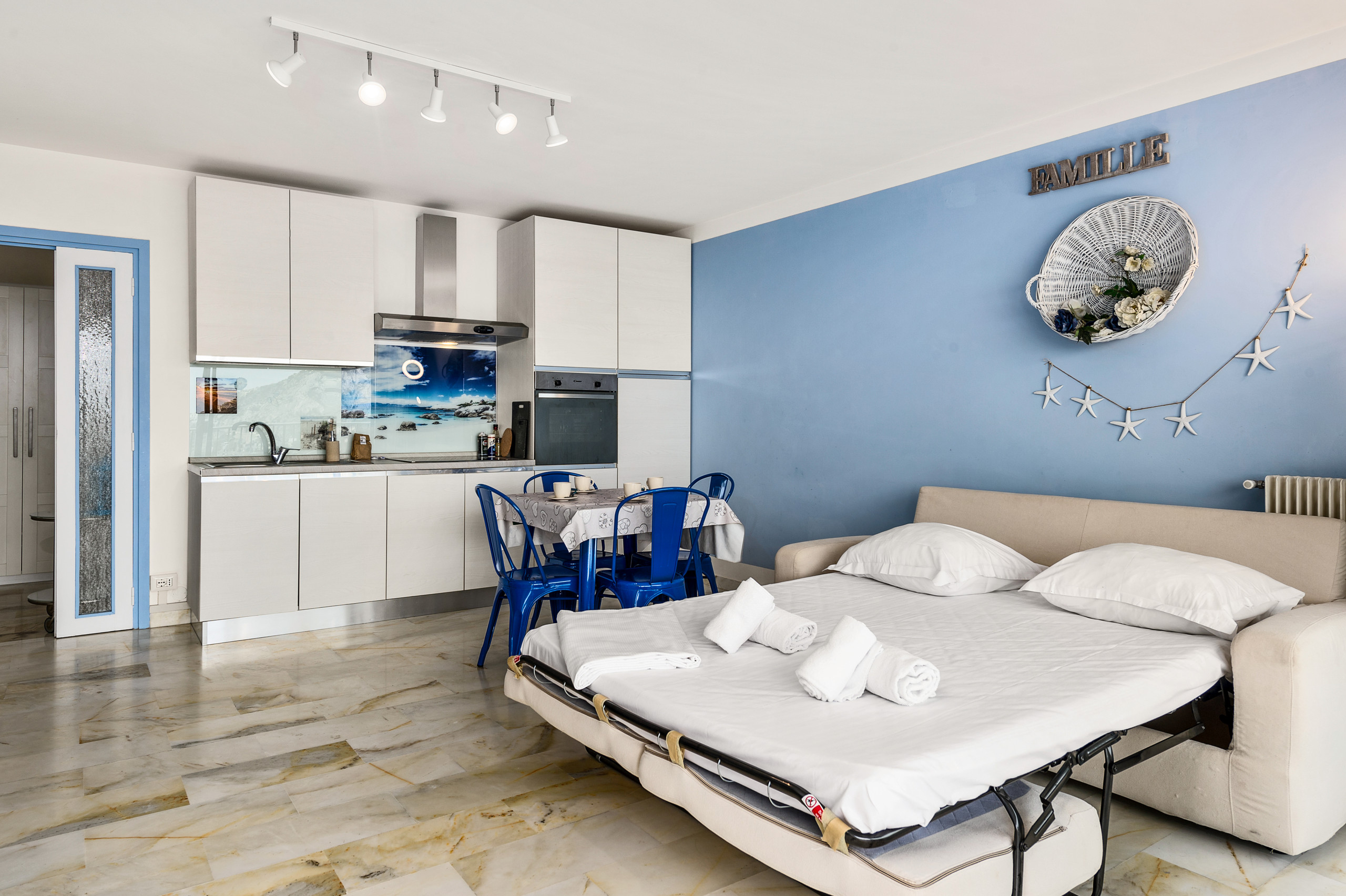 Découvrez ce superbe deux pièces avec vue mer, situé dans une résidence avec piscine. Parfait pour 3 personnes, il offre une chambre confortable, un salon avec canapé-lit, une cuisine équipée et une terrasse privée pour profiter de la vue. Wi-Fi gratuit inclus.