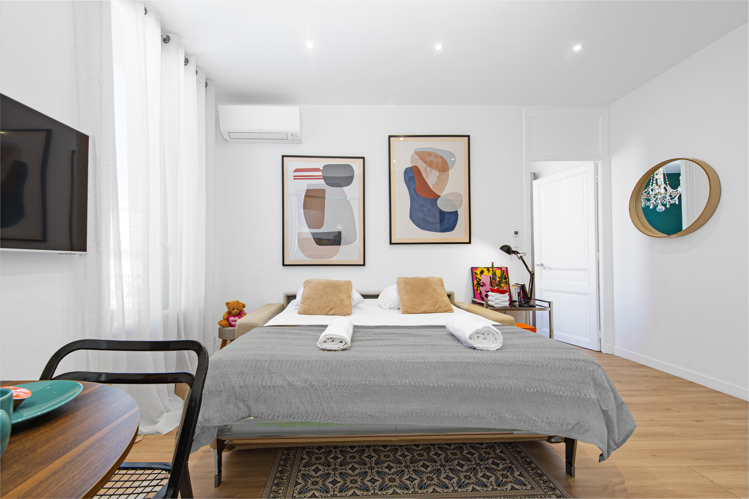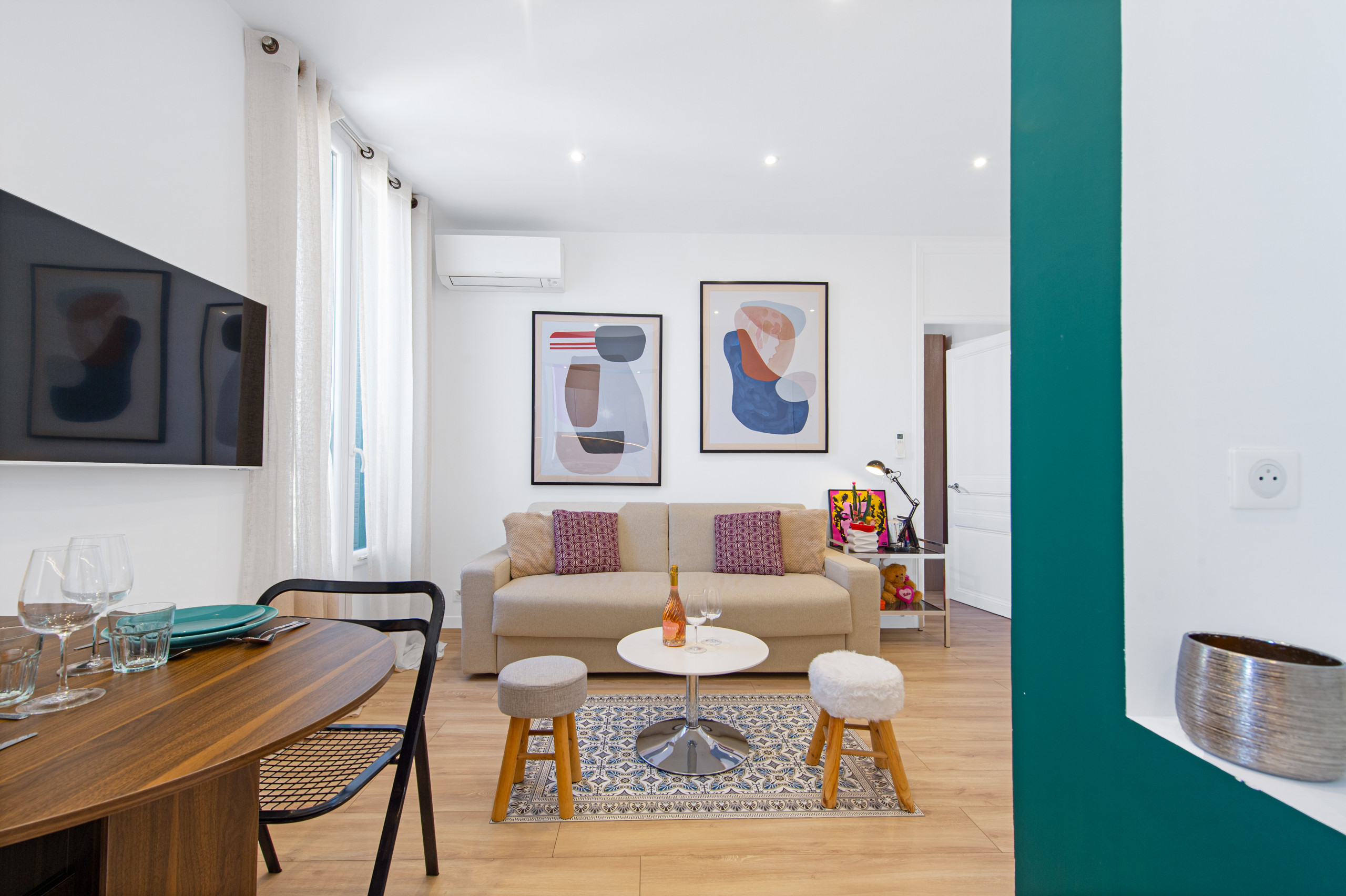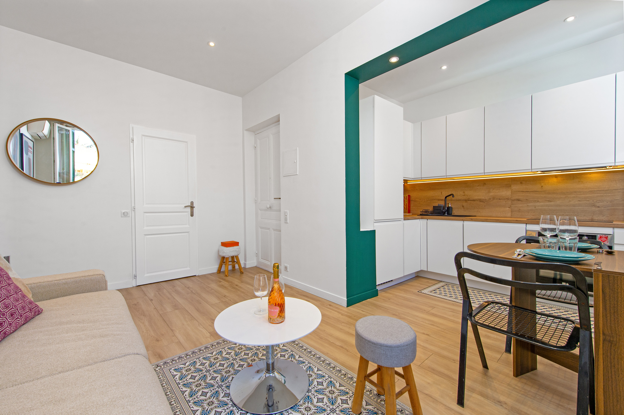 Très beau 2 pièces haut de gamme en premier étage sans ascenseur, 50m2 entièrement refait a neuf. Grande douche à l'italienne, climatisé, WIFI, cuisine américaine (lave linge, lave vaisselle, machine a café, micro ondes, four, plaques induction etc...).