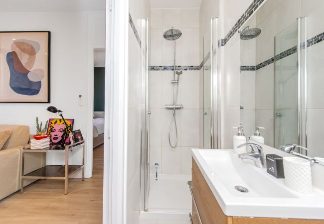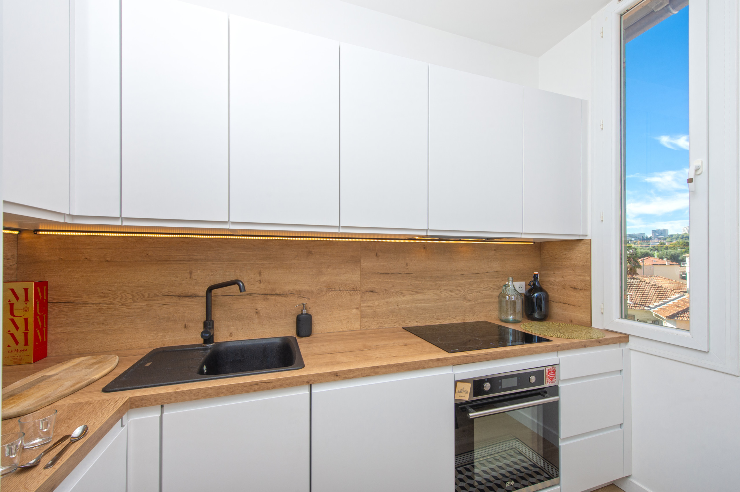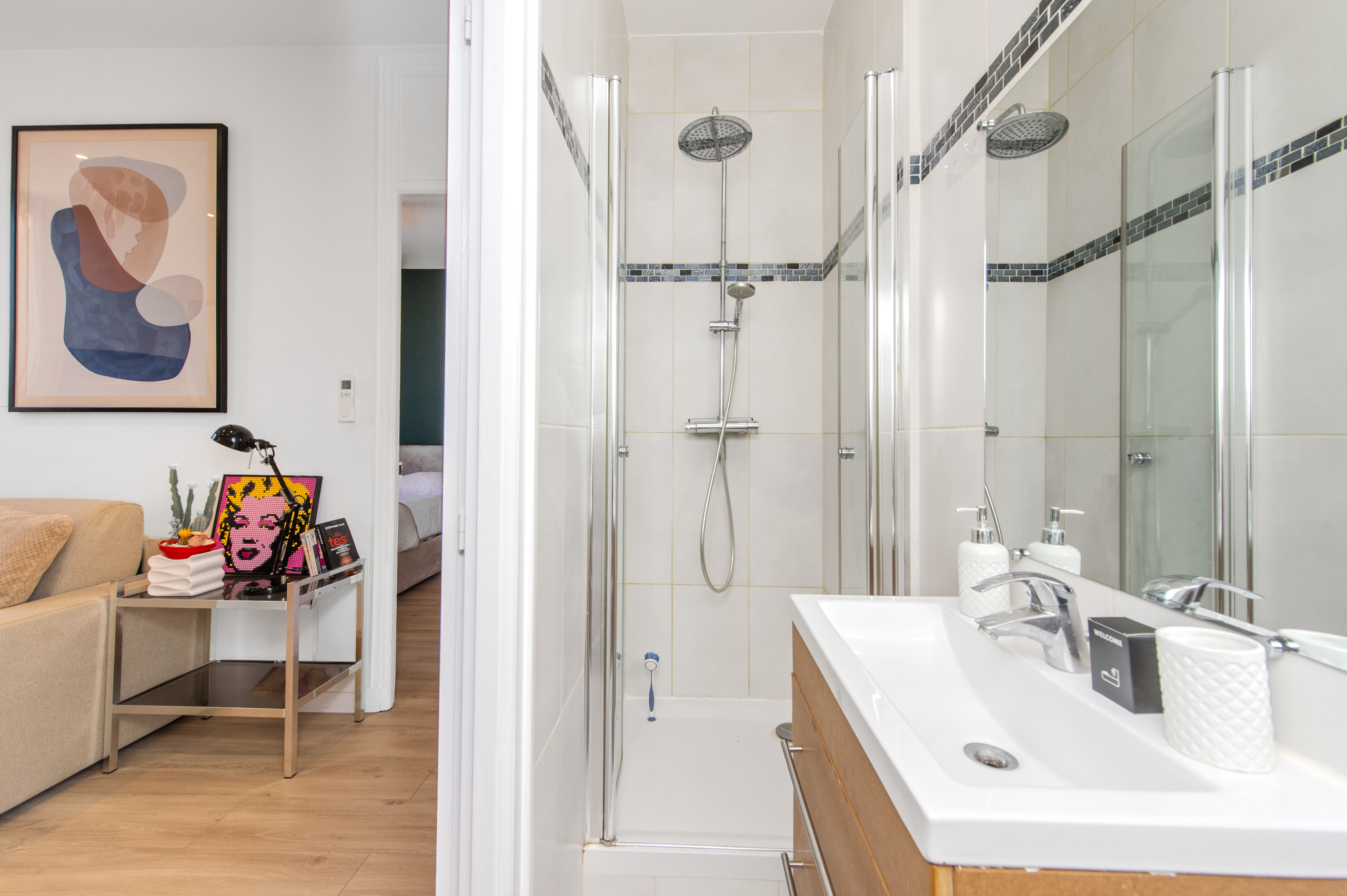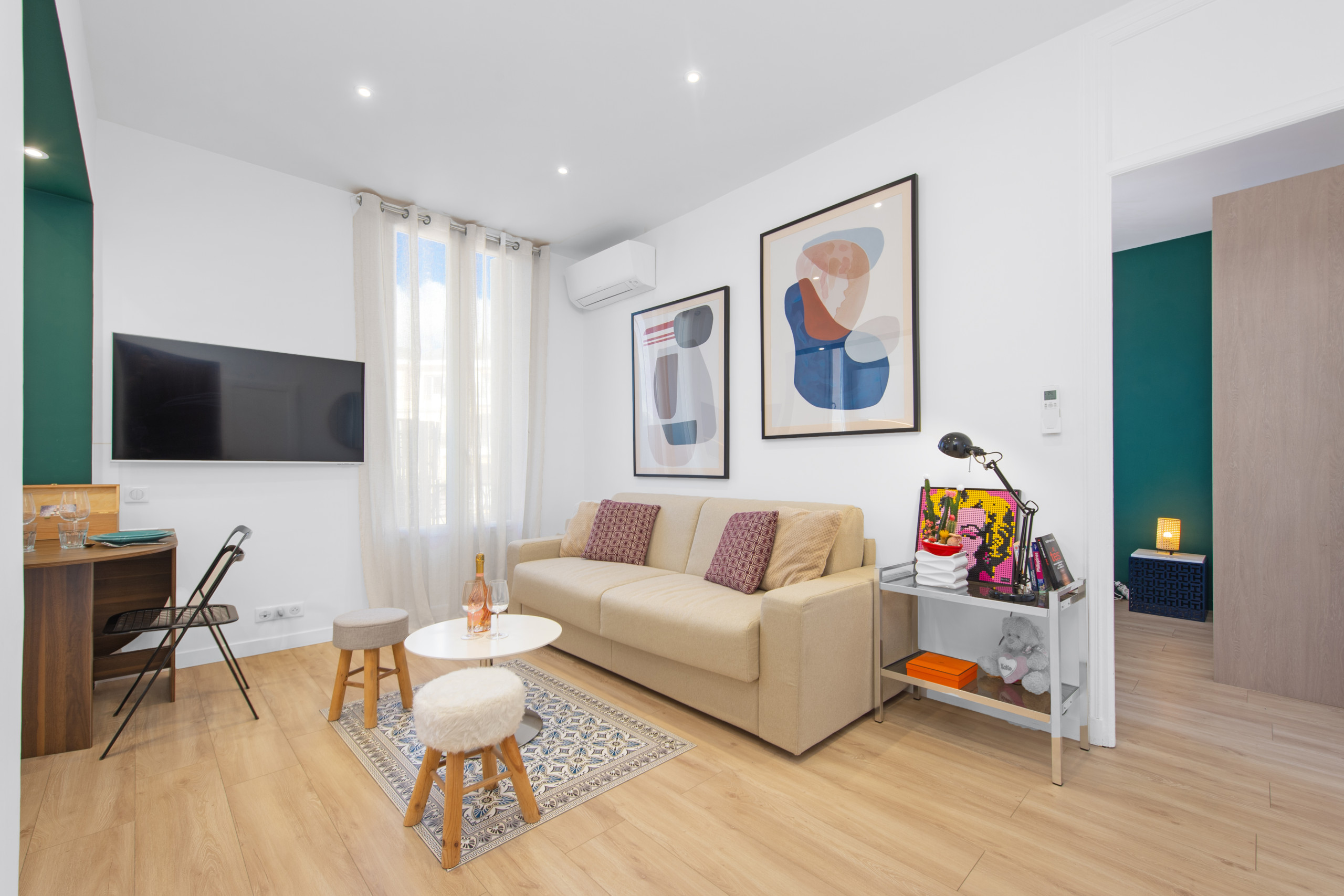 Très beau 2 pièces haut de gamme en premier étage sans ascenseur, 50m2 entièrement refait a neuf. Grande douche à l'italienne, climatisé, WIFI, cuisine américaine (lave linge, lave vaisselle, machine a café, micro ondes, four, plaques induction etc...).