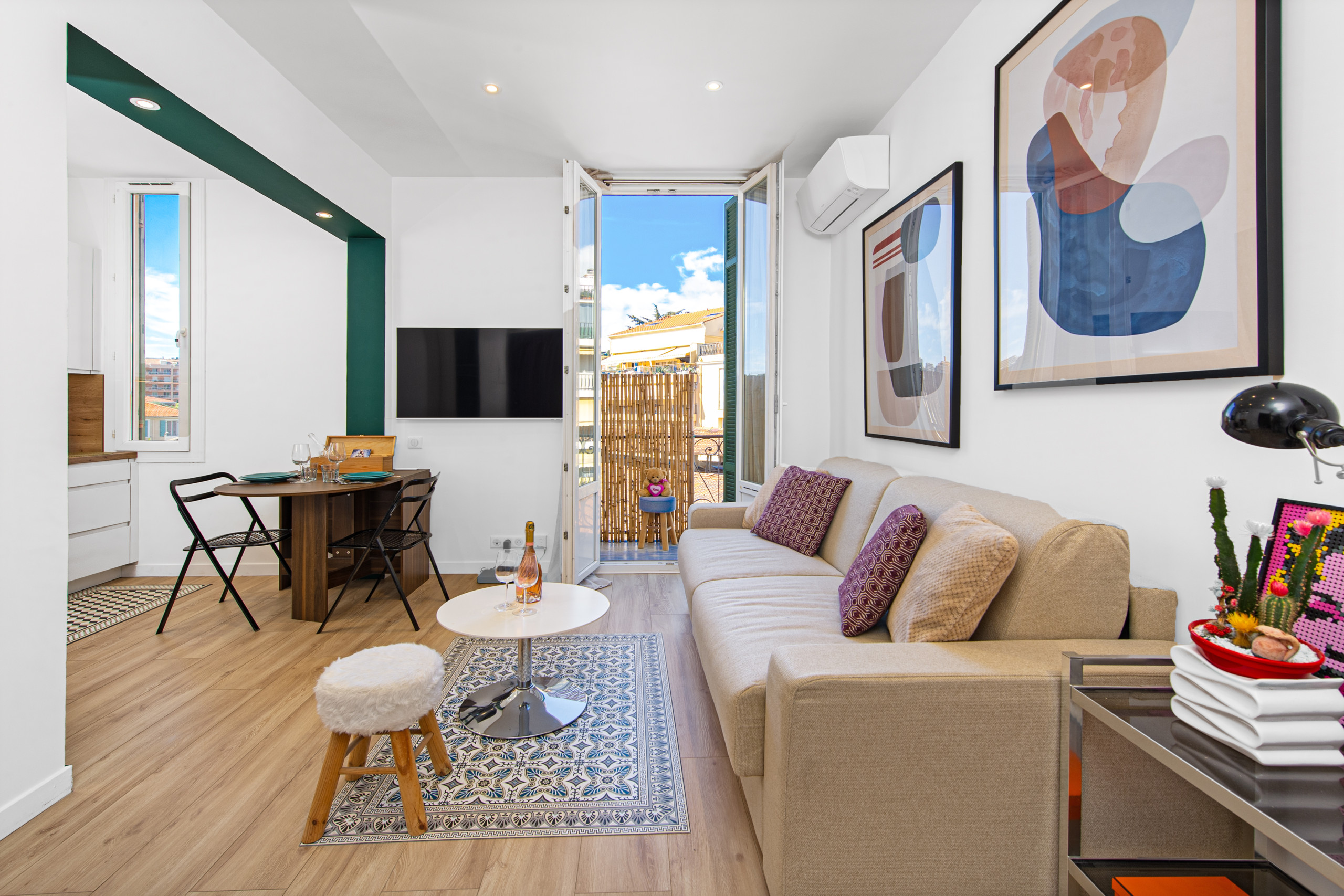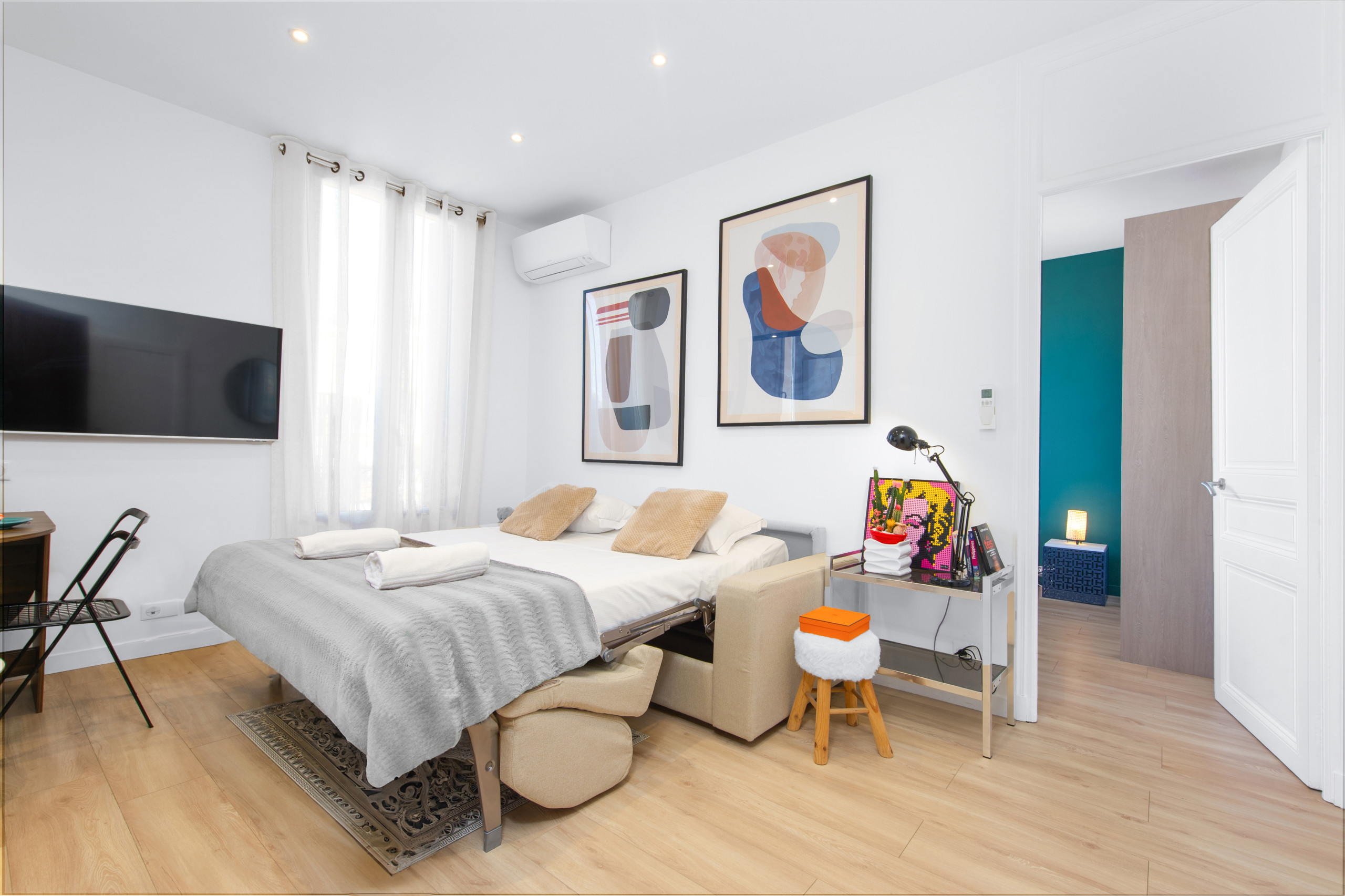 Il est situé à 2 minutes à pied de la plage (100 mètres), des restaurants, de la gare et à 5min d'une supérette. Idéalement placé pour visiter Monaco, Nice, l'Italie.