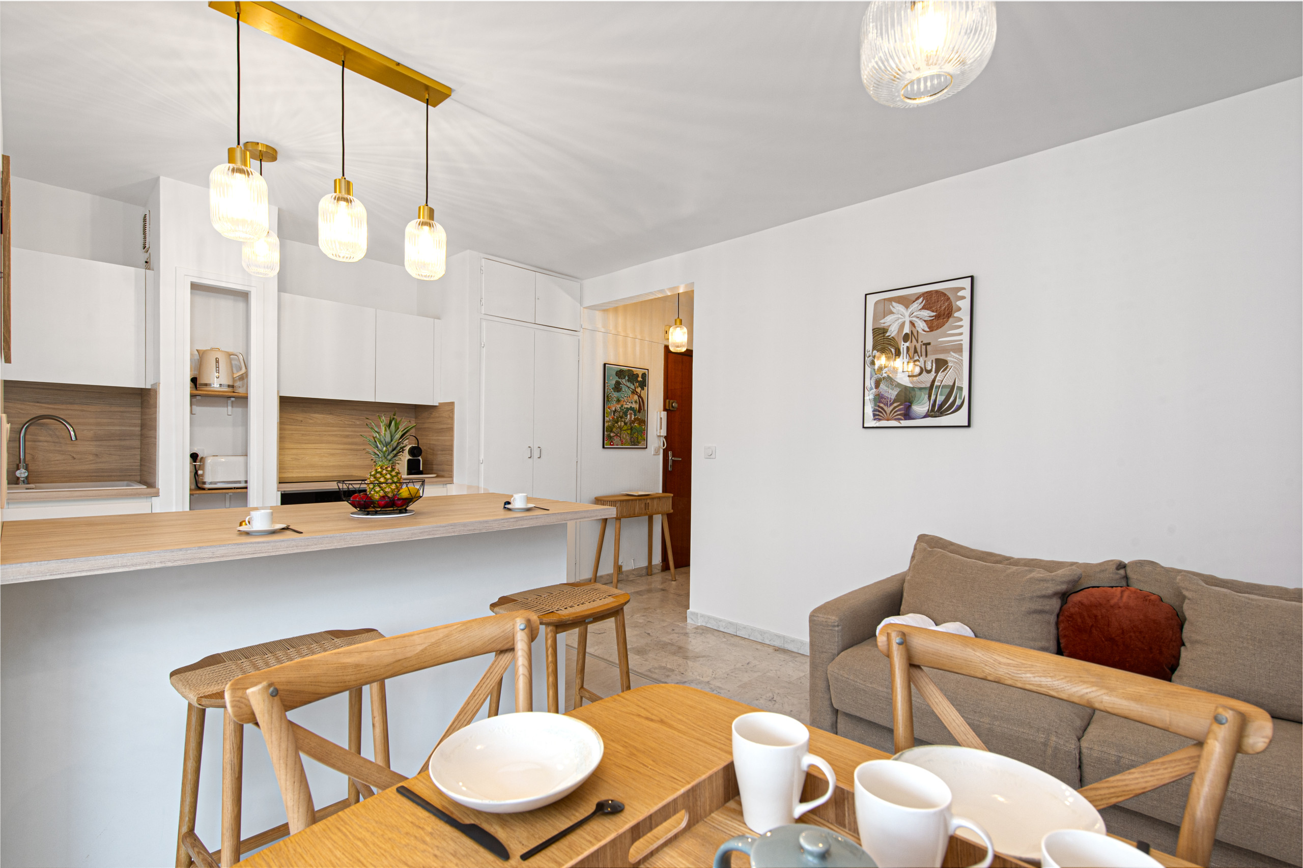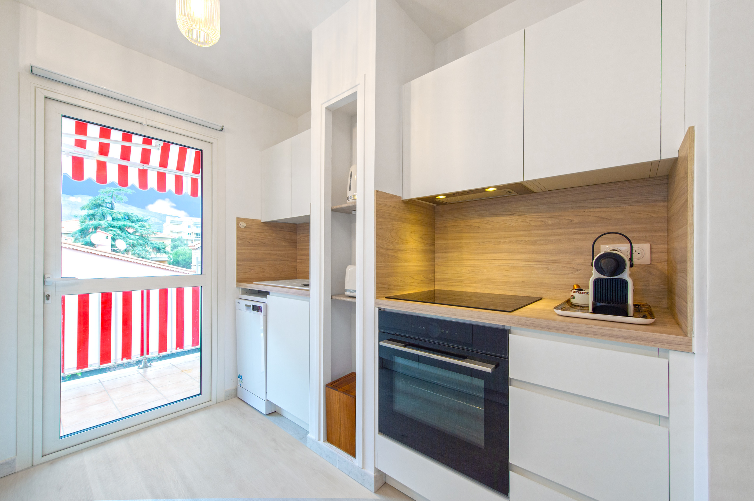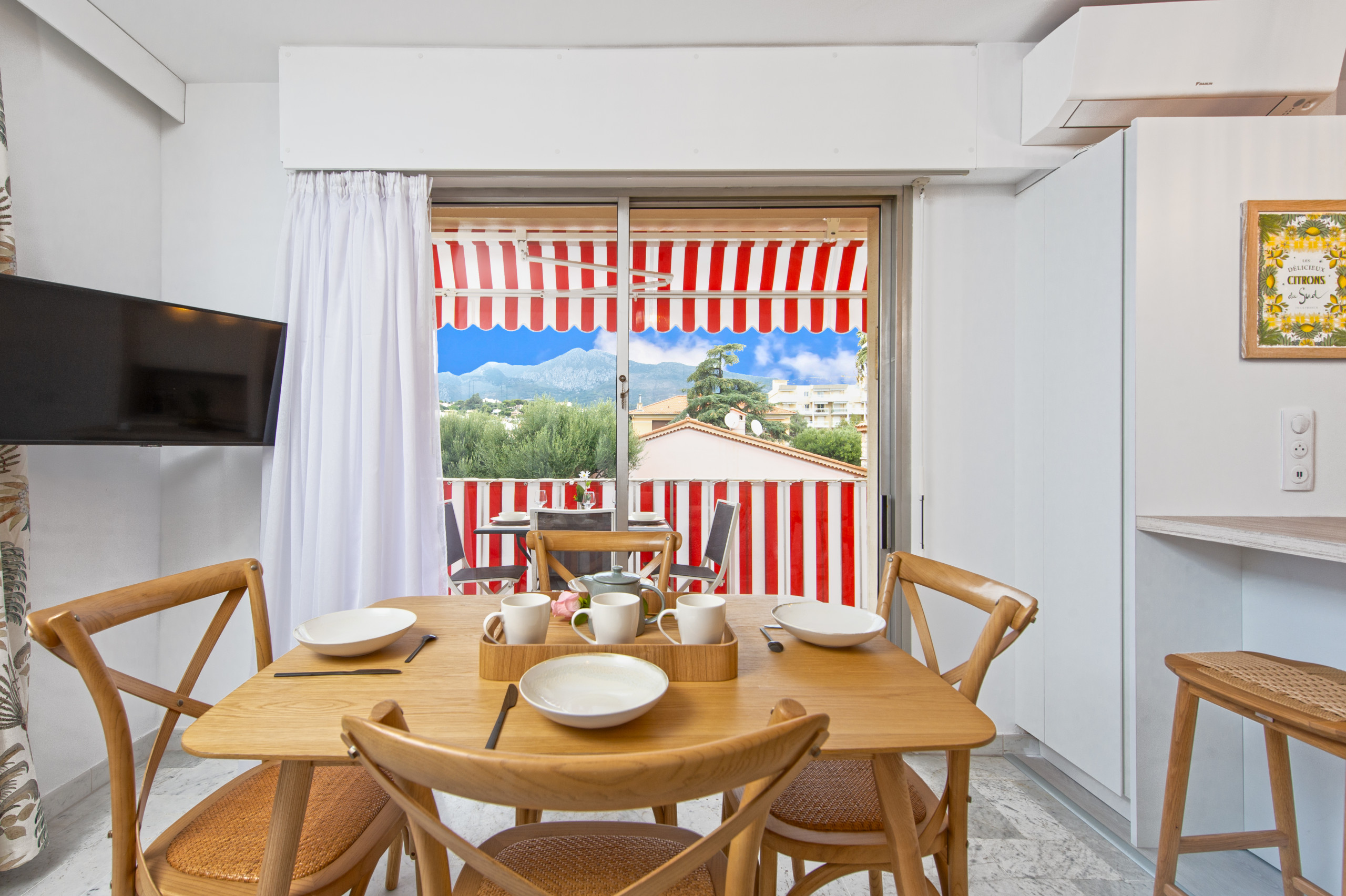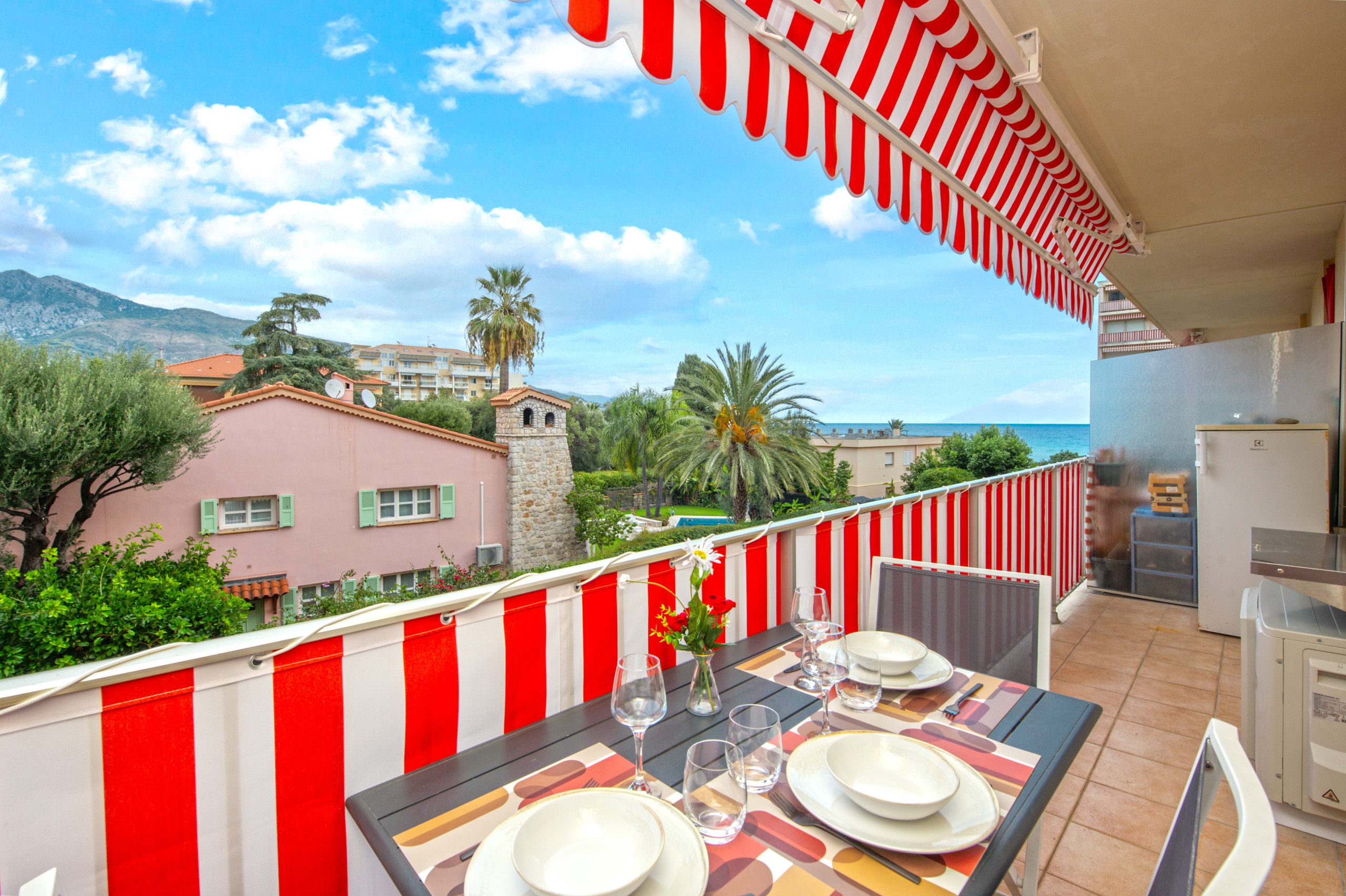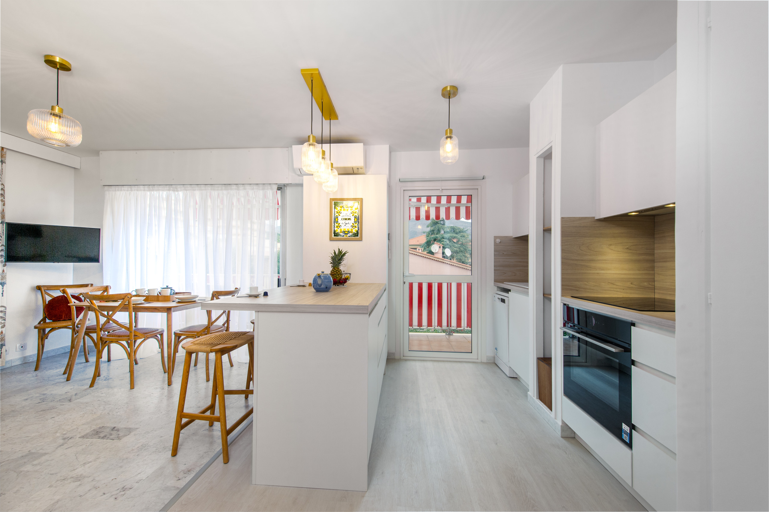 Appartement à Roquebrune-Cap-Martin qui possède 1 chambre(s) et Capacité pour 4 personnes. Logement de 40 m². Elle dispose de ascenseur, lave-linge, fer à repasser, accès internet (wifi), sèche-cheveux, chauffage électrique, TV.La cuisine indépendante, à induction, est équipée avec réfrigérateur, micro-ondes, congélateur, vaisselle/couverts, ustensiles/cuisine, cafetière, grille pain et bouilloire