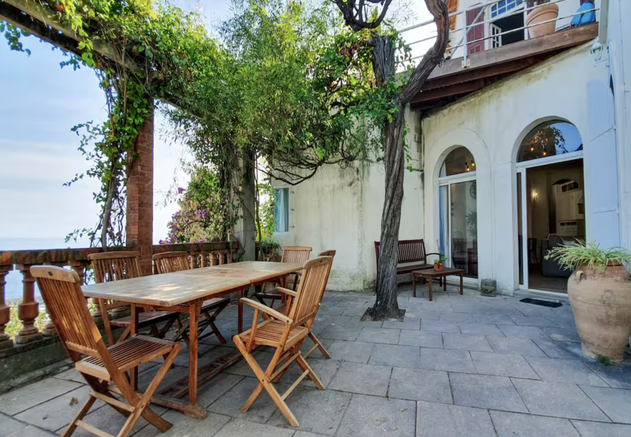 Paradis au calme avec vue imprenable sur la mer. Vous serez comme chez vous dans ce rez de chaussee de maison tres calme et cosy ou chaque piece est baignee de soleil. Les 2 grandes chambres avec leur salle de bain et vue sur la mer. Vous profiterez de sa grande terrasse et de sa cour privee ornees de plantes. A 15 mn a pied du centre , des plages et des restaurants, vacances reussies assurees!