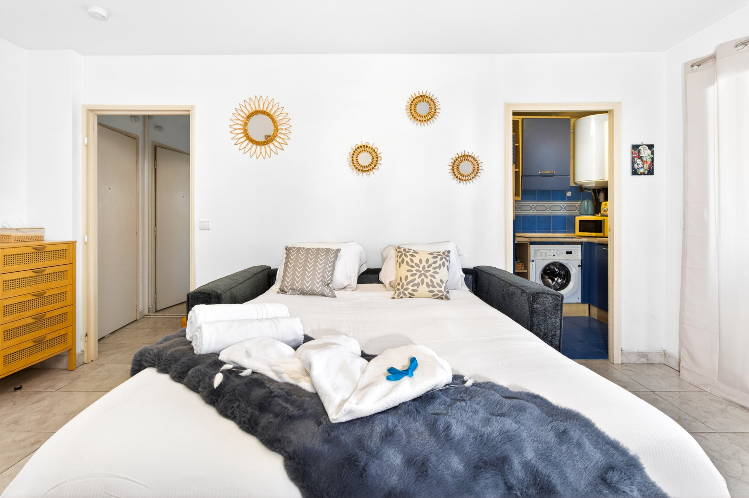 Bienvenue dans notre charmant studio, idéal pour un séjour confortable à Menton. Parfait pour 2 personnes, il se compose d’un espace de vie avec canapé-lit double, d’une cuisine équipée et d’une salle de bain avec baignoire.