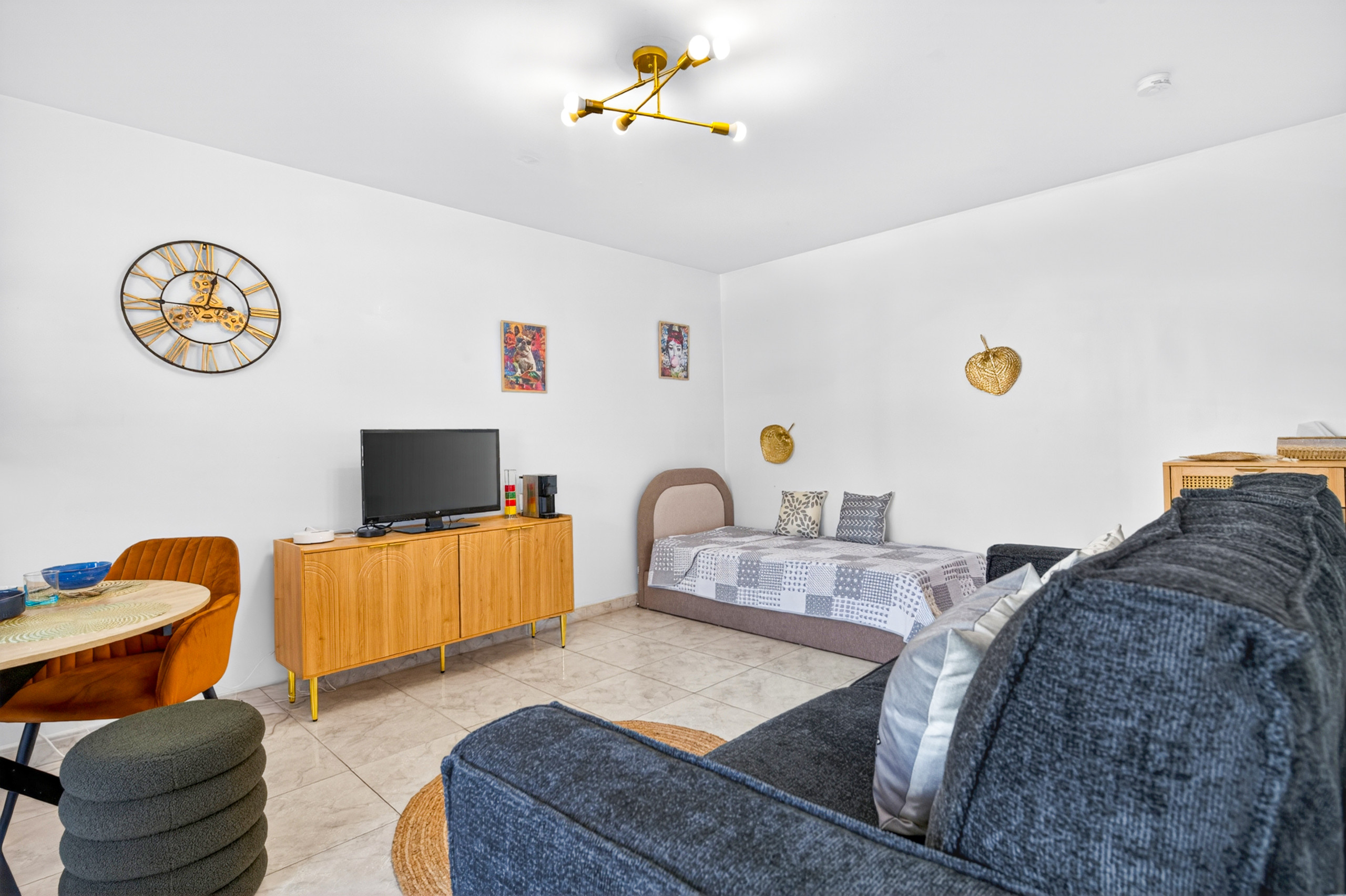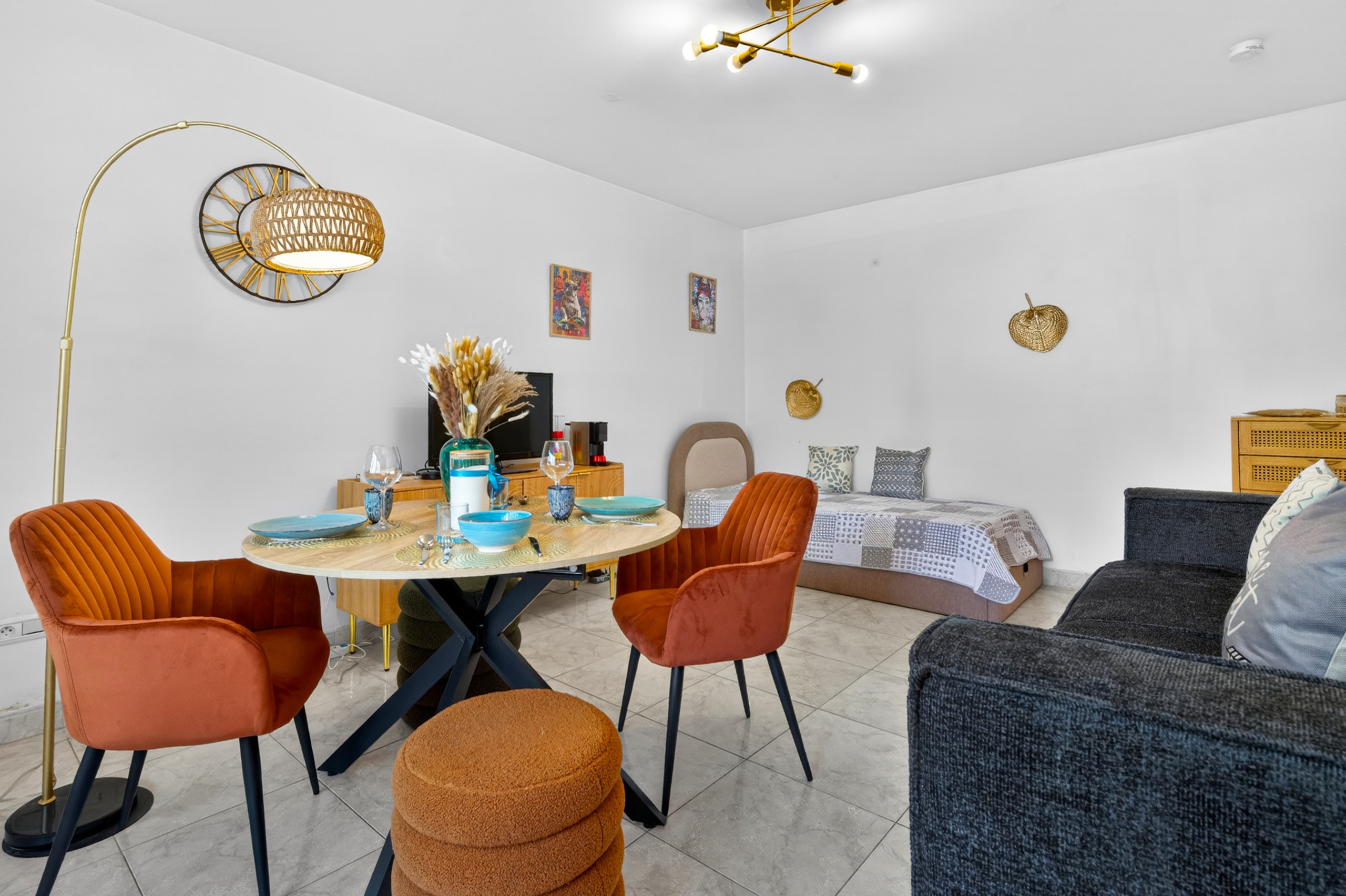 Bienvenue à « Villa Mélanie » ce charmant studio disposant d’un salon lumineux avec un canapé-lit, une cuisine et une salle de bain entièrement rénové. Profitez également d’une agréable terrasse.