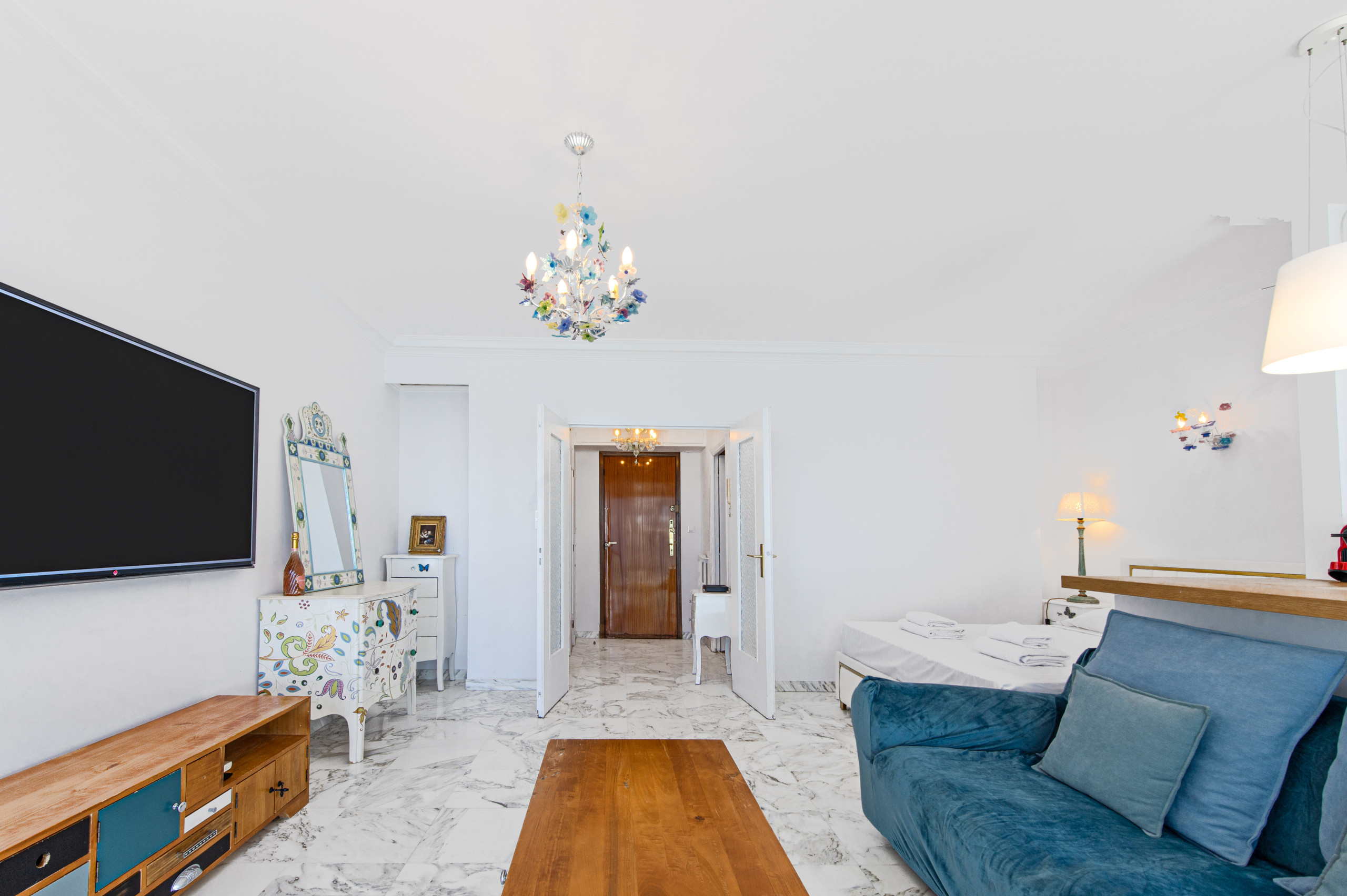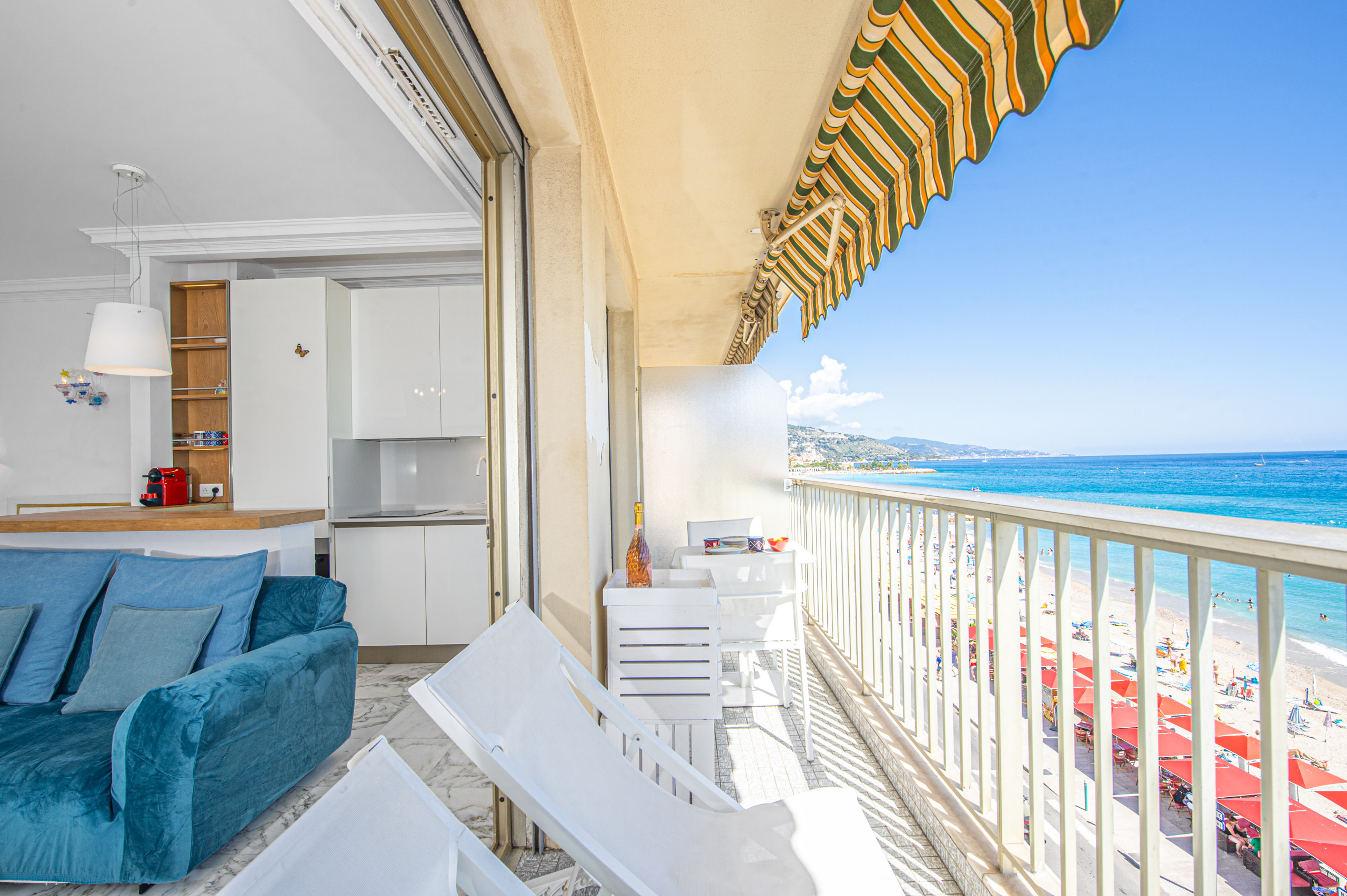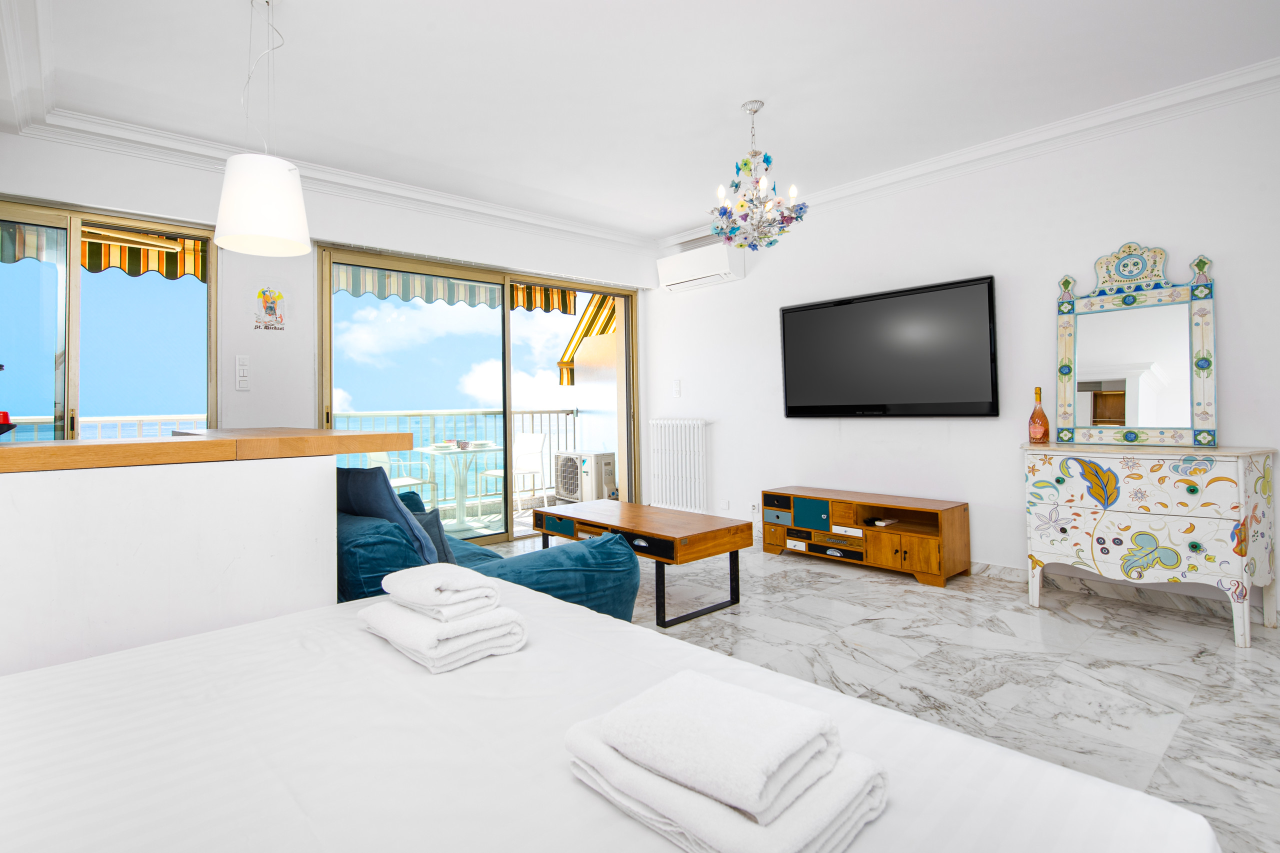 L'appartement est à deux pas de la plage des Sablettes, de la rue piétonne du marché couvert, des commerces, bars et restaurants.